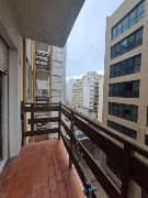 Orientado al contrafrente con balcón saliente.